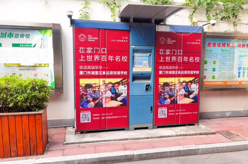 美達菲在廈門確定扎根后,重視線上線下的一系列宣傳告知,年后即開始在廈門戶外多個渠道進行大范圍的宣傳推廣,以“在家門口,上世界百年名校”為口號,集中在五緣灣、觀音山、會展、萬達廣場、蔡塘廣場等多個中高端商圈、商務圈,以及仙岳路、廈禾路、嘉禾路等多個主干道進行城市路名牌的投放,同時在島內(nèi)多個高端住宅小區(qū)的快遞柜進行大幅畫面展示。